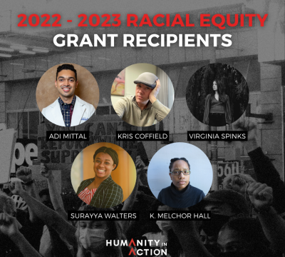 In celebration of Juneteenth 2022, we are pleased to announce the third iteration of the Humanity in Action Racial Equity Grant. The focus of this ongoing and evolving grant is to support new projects and ongoing work that focus on impactful change in the United States. This 10-month grant recognizes the impactful work of our Fellows and Senior Fellows as they support racial equity and #BlackLivesMatter. In addition to the financial support, Humanity in Action staff provides mentoring to support the implementation of the grant winning projects.